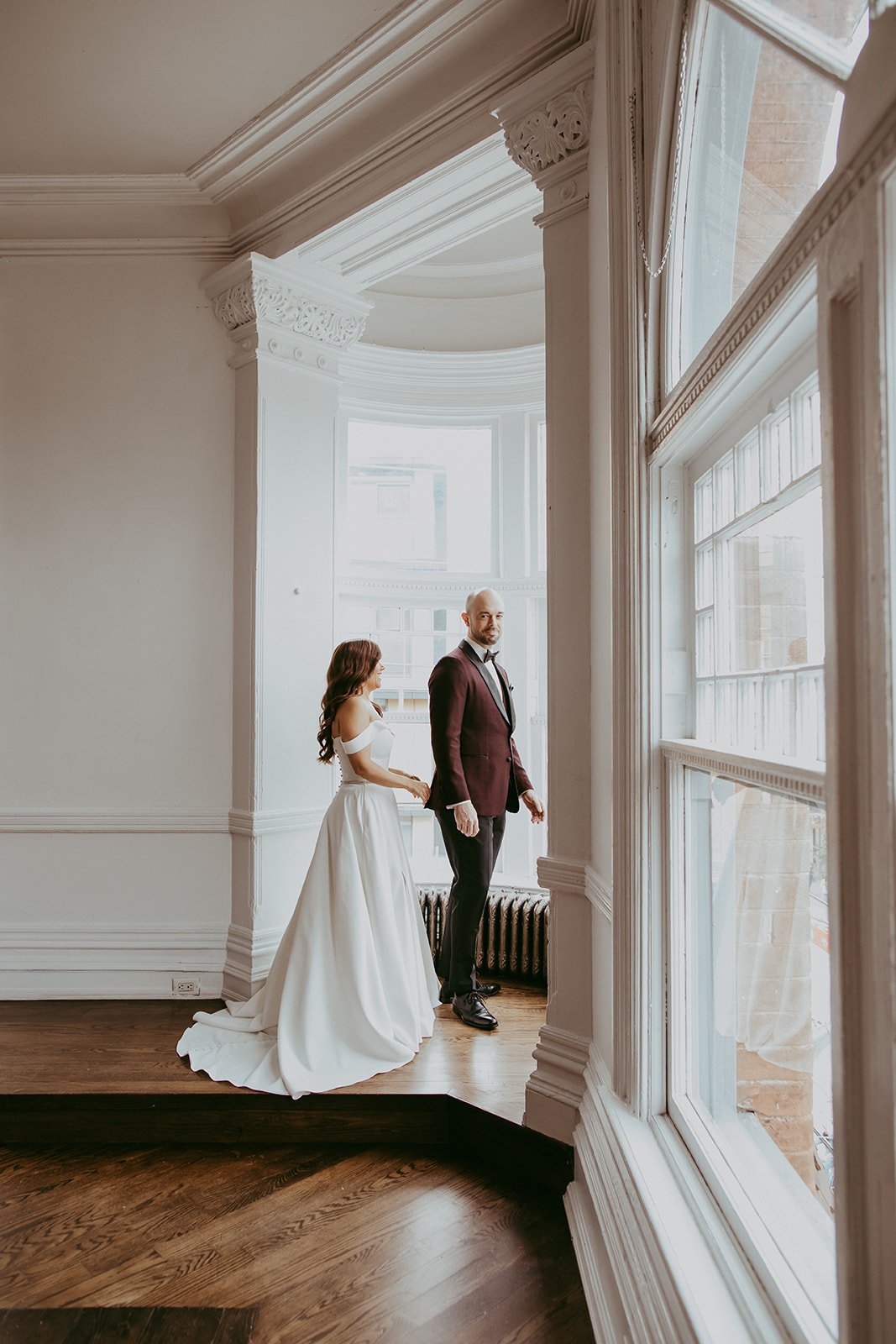 Since it was a gorgeous Fall Toronto day, we ventured outside for couple’s photos nearby and as usual, I was thrilled to see ivy on a brick wall at the bar across the street. If you know anything about me as a photographer, you know that I LOVE an ivy wall. When nature and the city come together it’s like a dream come true.